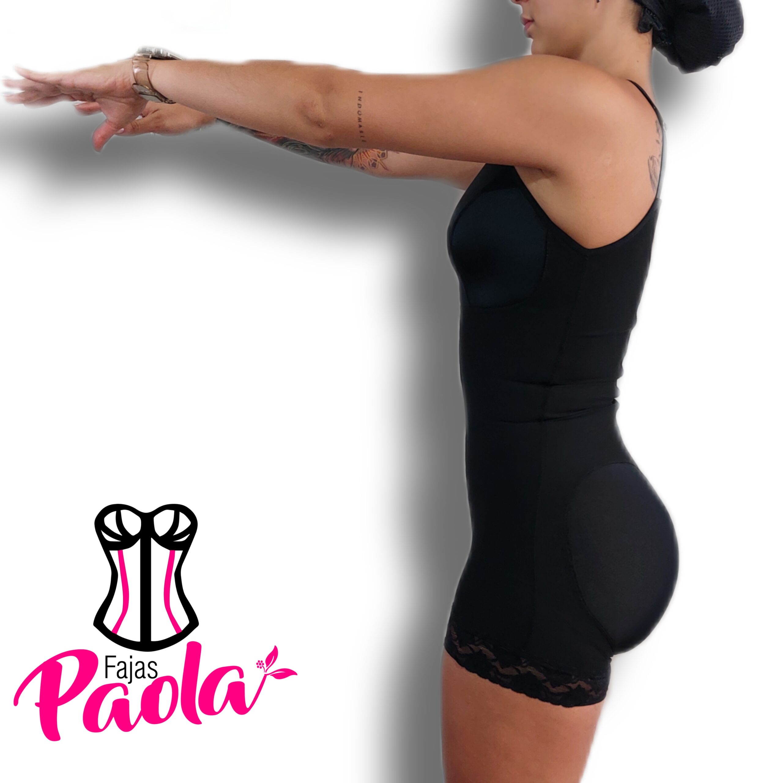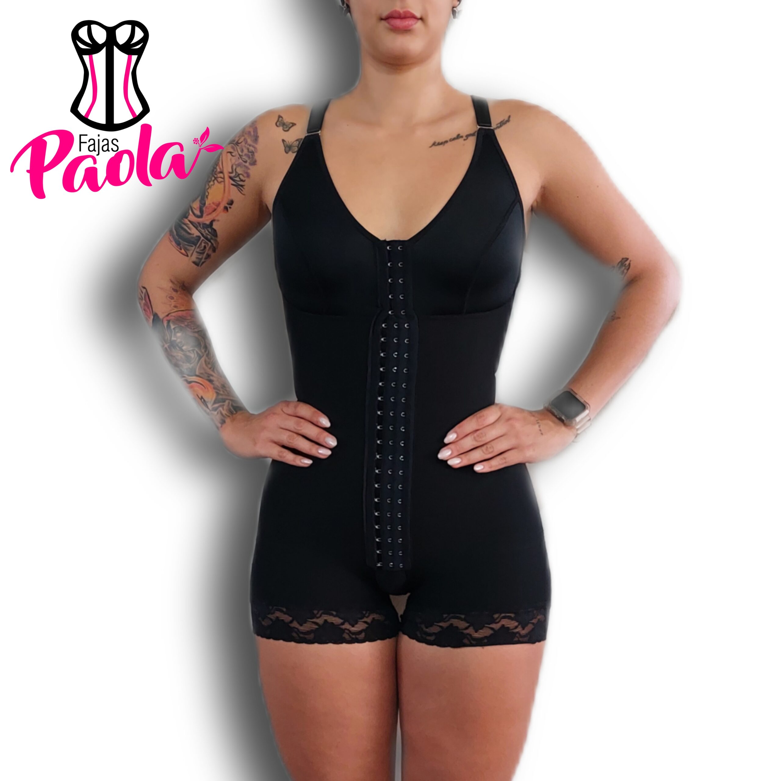 Faja modeladora cachetero con sostén y breteles ajustables. Confeccionada en powernet colombiano, totalmente forrada. Broches delanteros de 3 posiciones.