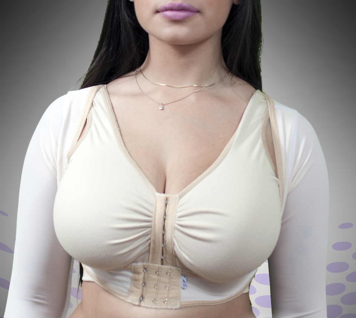 Mangas postoperatorias de lycra, con peto corrector de postural totalmente forrado. Broches delanteros de 3 posiciones para mejor ajuste.